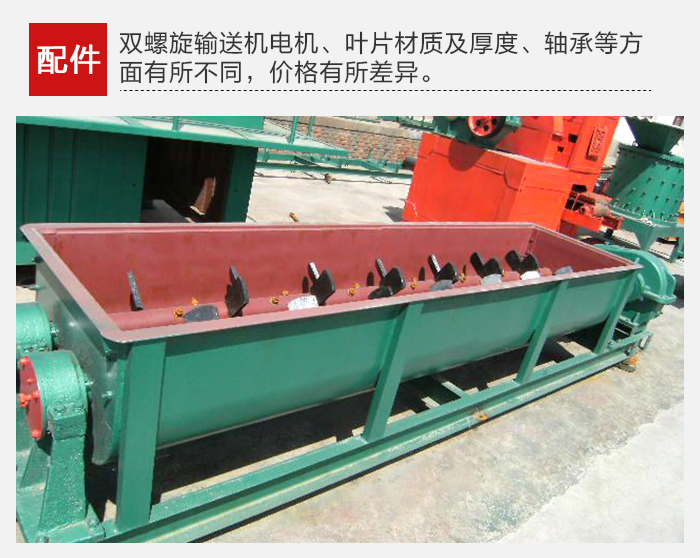雙螺旋輸送機電機、葉片材質及厚度、軸承等方面有所不同,防爆型電機與普通電機應用場合不同,價格不同,而選擇不同厚度和材質的螺旋葉片也會造成設備價格的變化,錳鋼比不銹鋼材質更耐磨,所以價格會偏貴一些,但是使用壽命也會更長。
