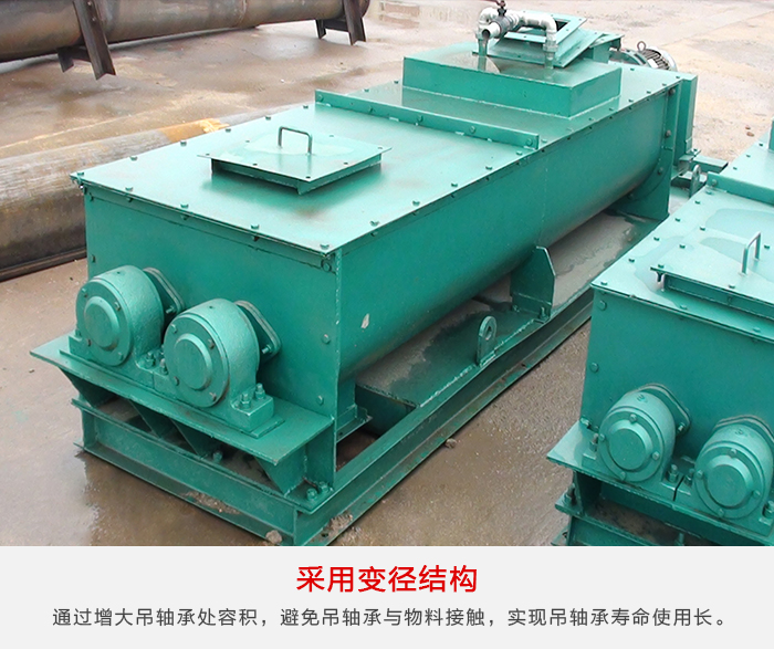 雙軸螺旋輸送機采用變徑結(jié)構(gòu),通過增大吊軸承處容積,避免吊軸承與物料接觸,實現(xiàn)吊軸承壽命可達到兩年以上。