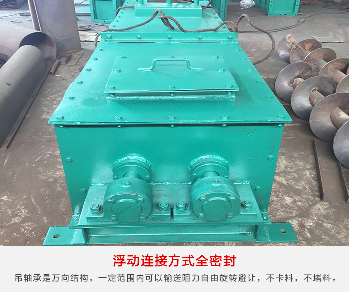 各傳動部位都是采用浮動連接方式,吊軸承是萬向結(jié)構(gòu),使吊軸承、螺旋體和尾部總能形成一個整體的旋浮體,在一定范圍內(nèi)可以輸送阻力自由旋轉(zhuǎn)避讓,不卡料,不堵料。
