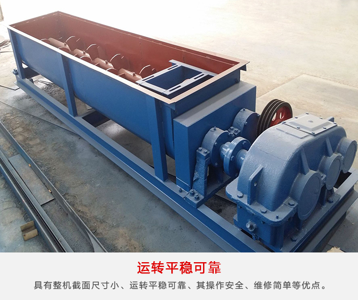 雙軸螺旋輸送機與其他輸送設(shè)備相比,具有整機截面尺寸小、運轉(zhuǎn)平穩(wěn)可靠、密封性能好、可中間多點裝料和卸料其操作安全、維修簡單等優(yōu)點。