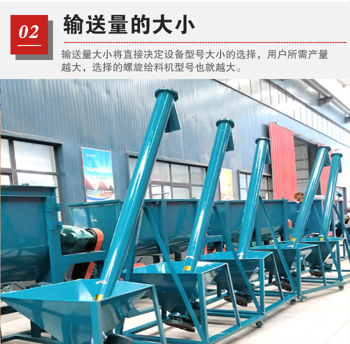 輸送量大小將直接決定設備型號大小的選擇,用戶所需產量越大,選擇的螺旋給料機型號也就越大,用戶需要結合自身對產量的需求來選擇合適的型號。