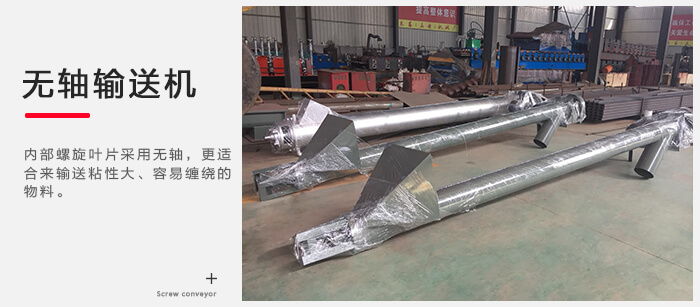 而無軸大傾角螺旋輸送機與有軸的恰恰相反,內部螺旋葉片采用無軸,更適合來輸送粘性大、容易纏繞的物料,這是有軸輸送機做不到的。