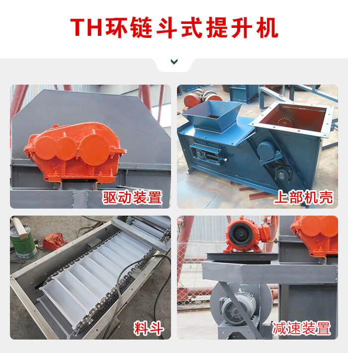 TH環(huán)鏈斗式提升機是一種常用的高效提升設備,提升產(chǎn)量大、效率高,主要由運行部件、牽引件(輸送鏈)、驅(qū)動裝置、上部裝置、中部機殼、下部裝置、加料口(入料口)和卸料口(出料口)組成。可適用與淀粉的高速提升輸送。