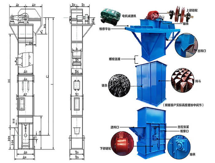 粉TH環(huán)鏈斗式提升機型號有TH160、TH250 、 TH315、TH400 、TH500等。同時大漢機械支持產(chǎn)品特殊定做,根據(jù)您的要求為您定制出合適的設備!