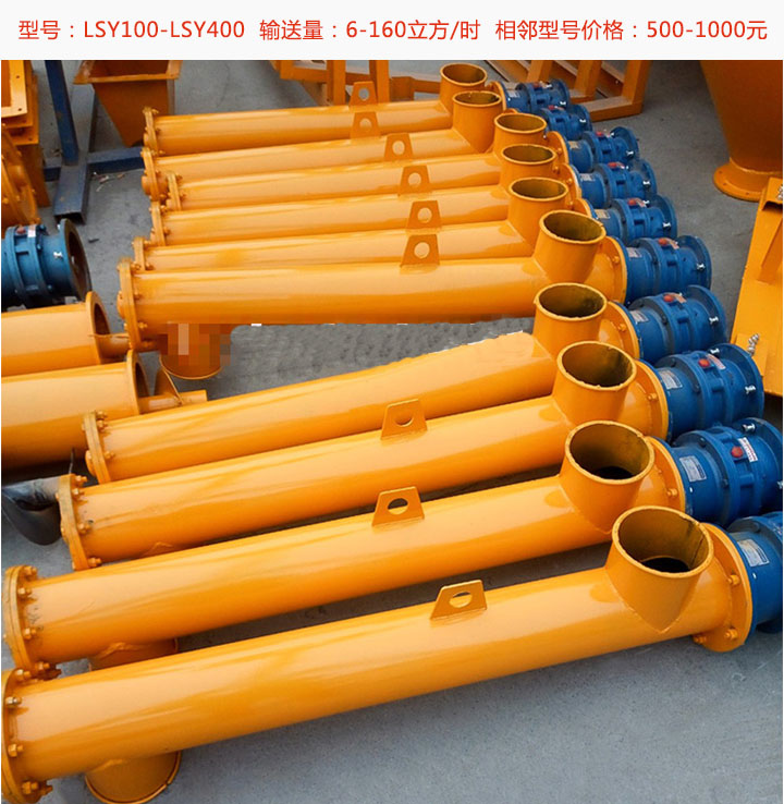 水泥螺旋輸送機(jī)常用型號有LSY100,LSY120,LSY140,LSY160,LSY200,LSY250,LSY300,LSY350,LSY400等9種對應(yīng)的,輸送量為6-160立方/小時,可根據(jù)需要的輸送量選擇對應(yīng)的型號,型號不同對應(yīng)的價格也不同。