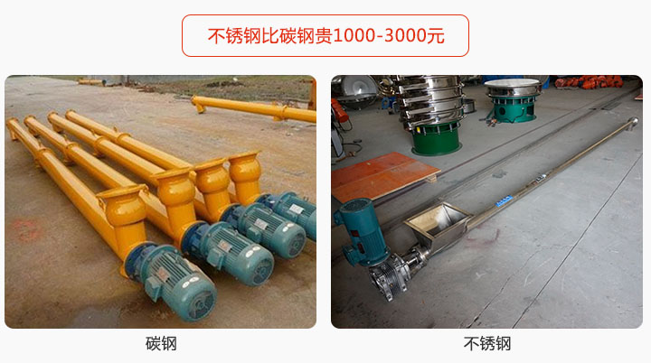 水泥螺旋輸送機(jī)有碳鋼和不銹鋼材質(zhì),碳鋼材質(zhì)硬度強(qiáng),耐磨性強(qiáng),不銹鋼價格偏貴,其具有良好耐熱性,耐腐蝕性,不生銹,價格偏差為3000元。