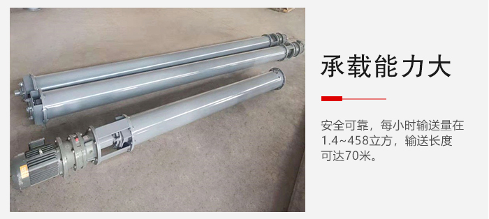 1、承載能力大、安全可靠,每小時輸送量在1.4~458立方,輸送長度可達70米;