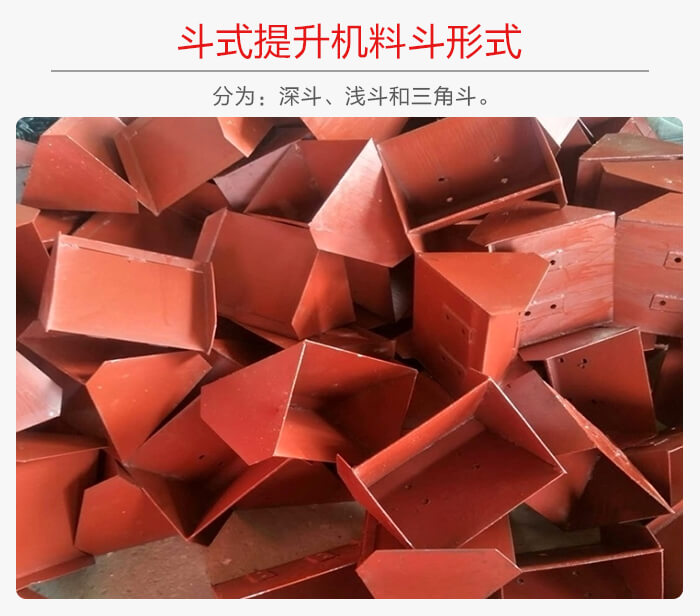 淺斗的斗中與料斗后壁的夾角小,每個(gè)料斗的裝載量小,但容易卸空,適于運(yùn)送潮濕的和粘性的物料。深和淺斗在斗式提升及沿牽引構(gòu)件長度方向間隔一定距離地固定在牽引構(gòu)件上。