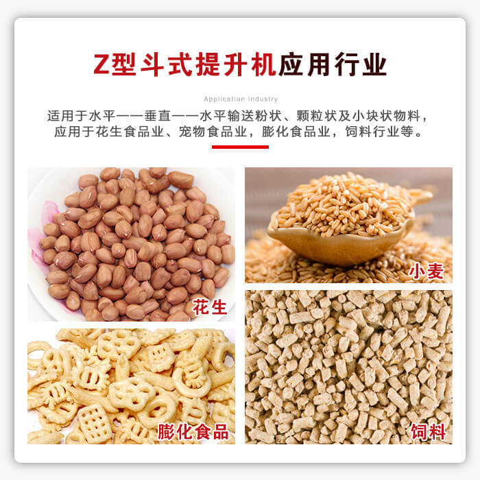 應(yīng)用行業(yè):適用于水平——垂直——水平輸送粉狀、顆粒狀及小塊狀物料,廣泛應(yīng)用于花生食品業(yè)、寵物食品業(yè),膨化食品業(yè),飼料行業(yè),糖果行業(yè),干鮮果品業(yè),保健食品業(yè),糧食精加工處理業(yè),化工醫(yī)藥業(yè)等。