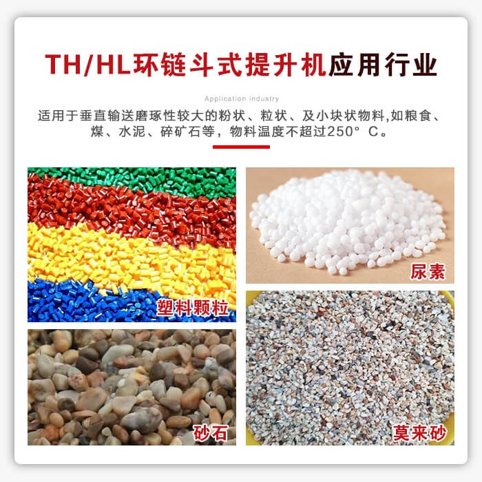 應(yīng)用行業(yè):適用于垂直輸送磨琢性較大的粉狀、粒狀、及小塊狀物料,如糧食、煤、水泥、碎礦石等,物料溫度不超過250°C。